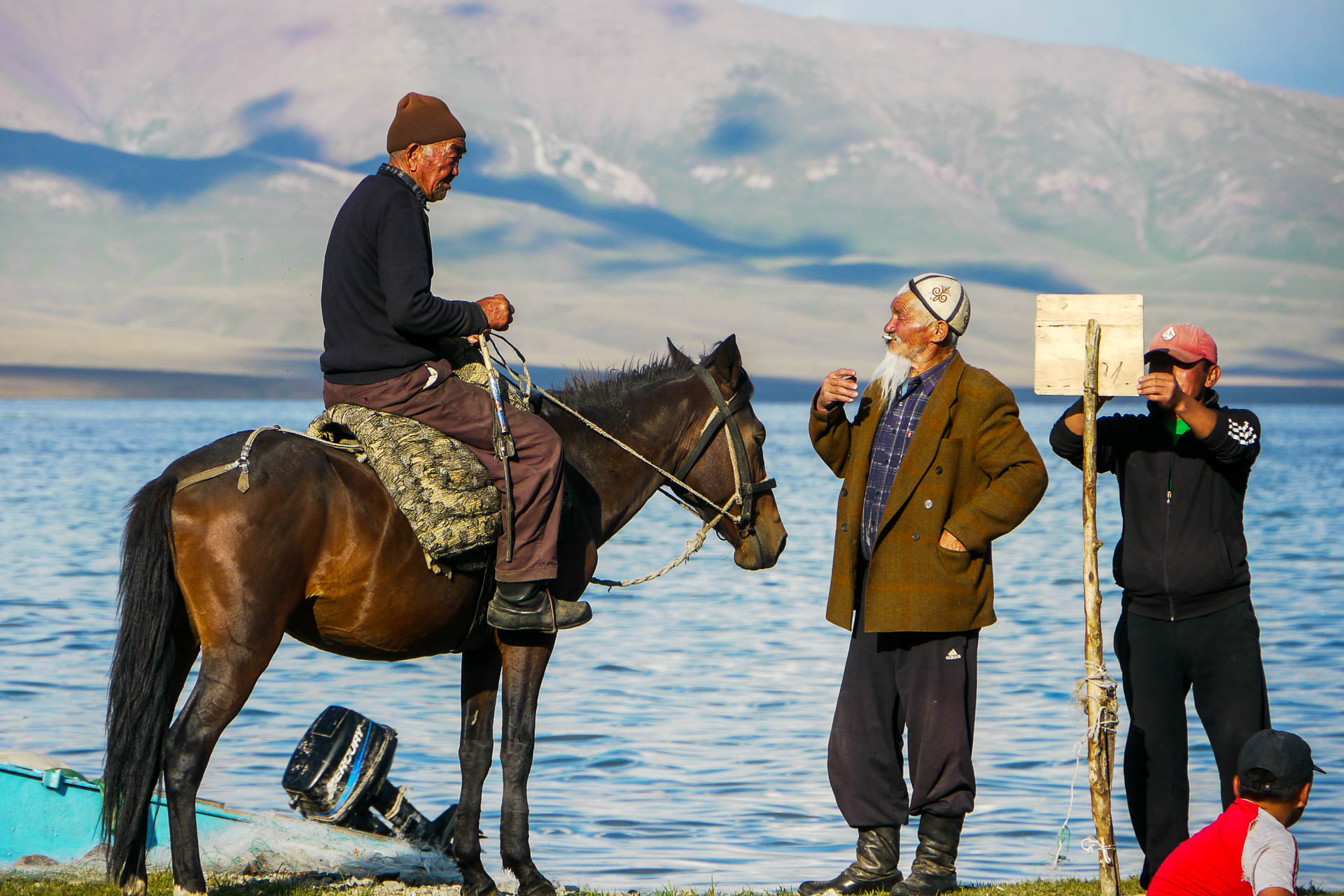 Nomades sur les rives du lac Son Kul au Kirghizistan © François Pillon