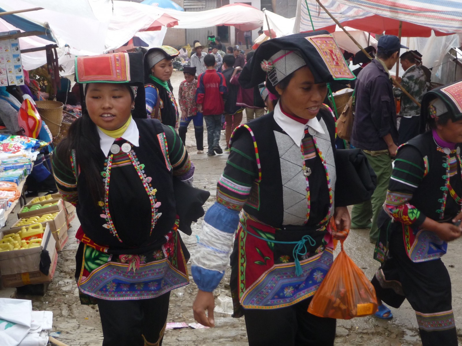 Tout le long de la frontière entre Vietnam et Yunnan, il y a possibilité de découvrir de nombreux grands marchés vraiment très intéressants, avec une multitude d'ethnies différentes qui y convergent, certaines avec des costumes de femmes absolument magnifiques.