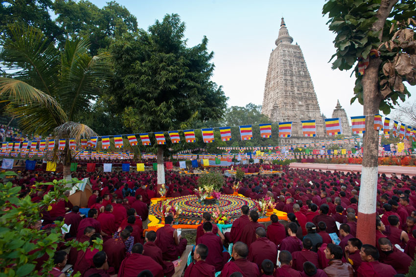 Cérémonie bouddhiste tibétaine au temple Mahabodhi de Bodhgaya © David Ducoin