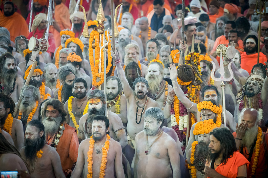 L’intérêt est aussi dans le spectacle permanent offert par ces immenses foules colorées et bigarrées. Parmi eux, il y a des naga sâdhus, nus avec le corps couvert de cendres.