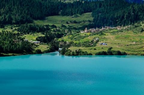 Nous prenons un véhicule pour nous rendre à Geling. En effet, pour cette étape, il n’y a pas d’autre d’alternative que de marcher sur une piste. Nous avons donc opté pour un transfert en jeep. Nous longeons la Kali Gandaki appelée ici Mustang Khola. Nous traversons à pied un pont et nous changeons de véhicule. La piste nous conduit jusqu'à Chele où nous découvrons des manis verticaux, ce qui est inhabituel. Nous arrivons à un col à 3 500 mètres d'où la vue sur les montagnes enneigées est magnifique. Nous descendons vers le village de Samar qui est une importante halte caravanière. Samar en tibétain veut dire « terre rouge ». Balade dans le village boisé de saules et peupliers. Nous apercevons les champs d’orge et de blé. Au loin le Nilgiri (7 134 m) et Tilicho (7 161 m) nous dominent. En sortant du village, nous contournons deux éperons rocheux avant de descendre dans le lit de la rivière Syangboche. Nous partons à pied découvrir la grotte du même nom dans laquelle médita Guru Rimpoché (le fondateur du bouddhisme tibétain) au VIIIe siècle. Nous visitons cette grotte temple où vit un ermite puis nous remontons par une gorge avant que la vallée ne s’élargisse enfin. Nous reprenons notre véhicule pour nous rendre au village de Geling. Si nous trouvons le moine détenteur des clés, nous découvrons le très beau monastère rouge qui domine le village.