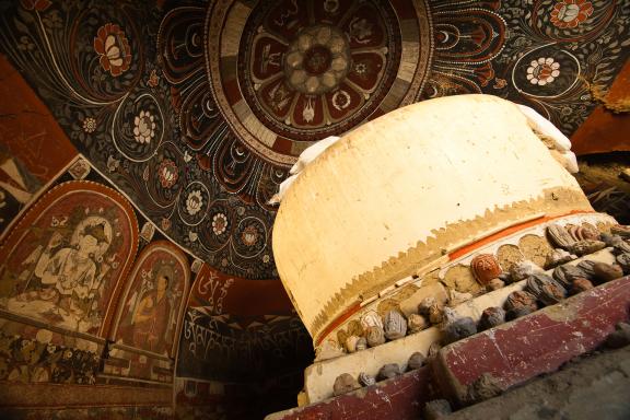 Aujourd’hui, nous rejoignons le monastère troglodyte de Lori Gompa. Creusé dans la falaise, fondu dans la roche, s’est courbé à l’intérieur que l’on découvre les fresques et sculptures. En chemin nous visitons la stupa troglodyte et Tashi Kabum, merveilles d’art bouddhique. Redescente sur Yara.