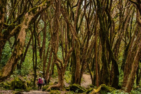 De montées en descentes, de clairières en forêts, nous remontons la vallée. Quelques huttes sommaires nous rappellent que la forêt est habitée par quelques éleveurs qui redescendent dès les premiers froids. Avec un peu de chance, nous pourrons apercevoir des singes et admirer les dernières orchidées. Campement à la sortie de la forêt. Très beau coucher de soleil sur le Dhaulagiri qui se rapproche.